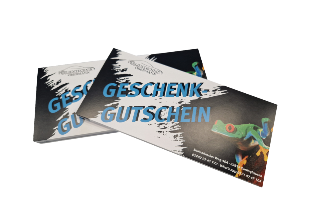 Du möchtest Deinen Kunden einen zusätzlichen Service bieten und ihnen die Möglichkeit geben, Gutscheine für Deine Produkte oder Dienstleistungen zu erwerben? Du bist Dir jedoch unsicher, wie diese Gutscheine gestaltet sein sollten oder welche Informationen sie enthalten sollten? Keine Sorge, wir von Folientechnik Obermann in Oerlinghausen sind hier, um Dir zu helfen!